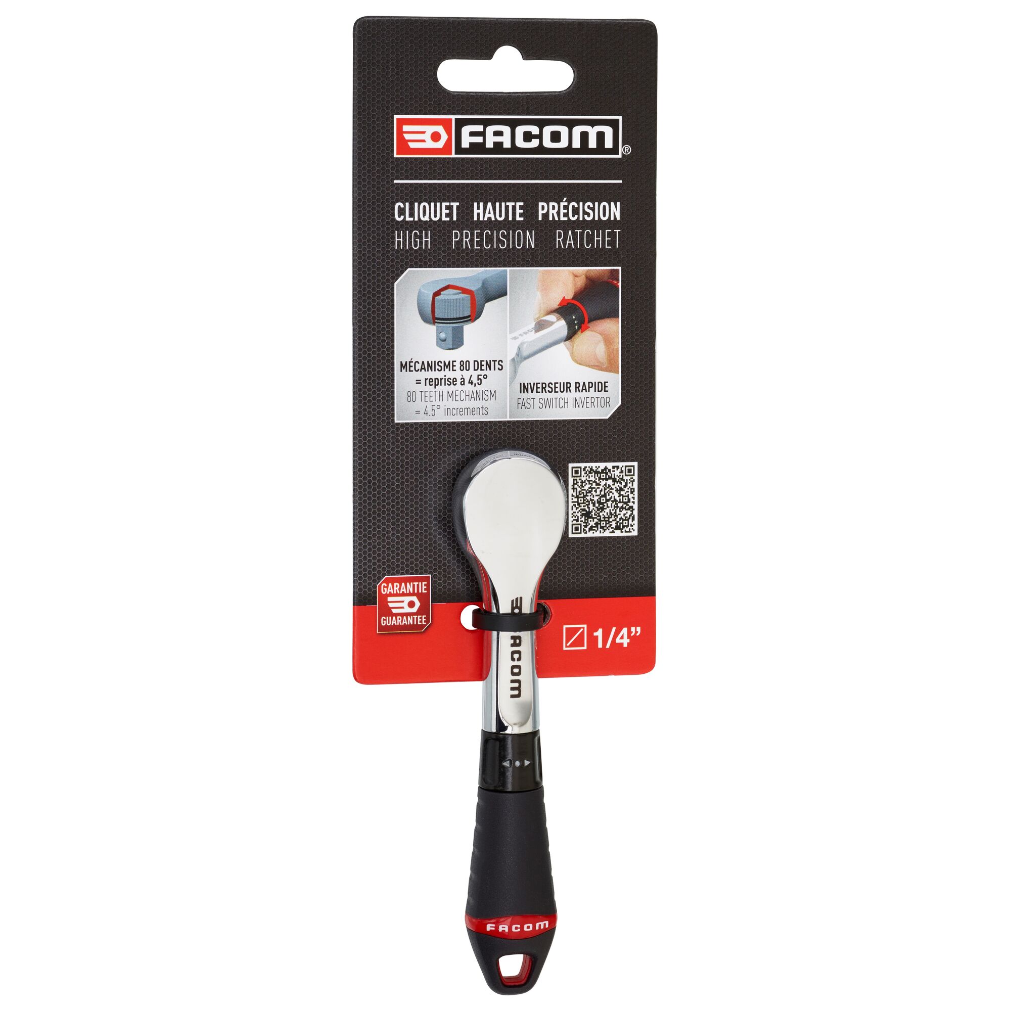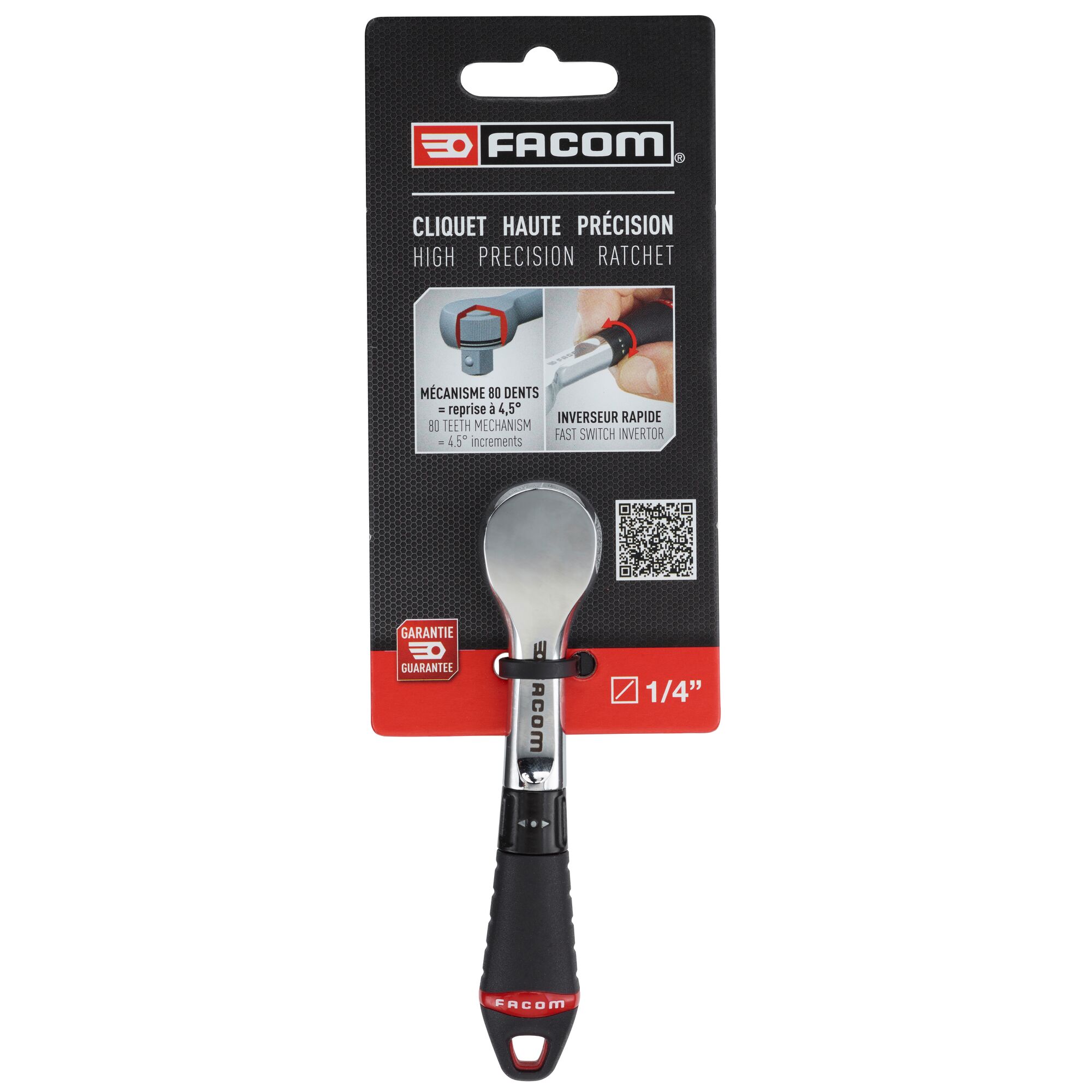 This is 1/4 in Square Drive Mechanical Torque Wrench manufactured by Facom. The manufacturer part number is R.181PB. VDE/1000V Approval Options - no. It has a non sparking nature no . A quality product with a nice satin chrome finish. Its driver is of a/an square shape . The product is made from highly stable and reliable chrome vanadium steel. It has an overall length of 121.2 mm. It is height safe no . The product has a drive size of 1/4 in. It has a model r.181pb. Basically, this handle is a type of bi-material elastomer, allowing extreme comfort.