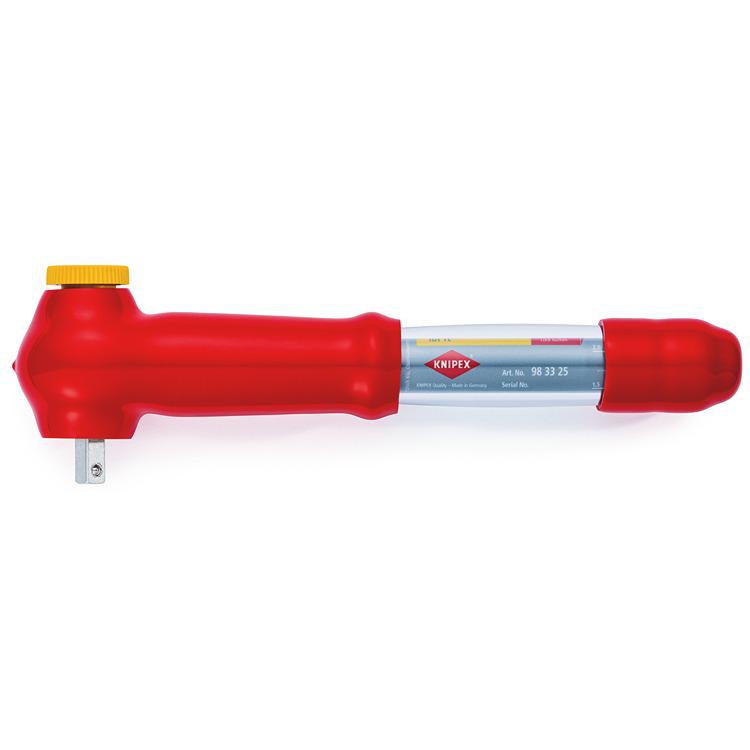 This is 5 → 25Nm 3/8 mm Drive Square Drive 3/8in Insert manufactured by Knipex. The manufacturer part number is 98 33 25. Its scale graduations are about 5 → 25nm . The product has a drive size of 3/8 mm. Its driver is of a/an square shape . In addition, its torque range is about 5 → 25nm . Its insert size is about 3/8in .