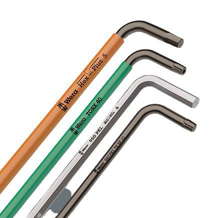 This is 9 Piece L Shape Long arm Torx Key Set manufactured by Wera. The manufacturer part number is 05024242001. A quality product with a nice phosphate finish. The product is made from highly stable and reliable steel. It is a l product with unique specifications. Moreover, it has t8; t9; t10; t15; t20; t25; t27; t30; t40 set contents . The product is available in 139 x 72 x 25 mm size. Additionally, it has a long arm . The product consists of 9 pieces.