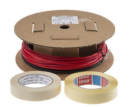 This is 300W/m Trace Heating Cable Underfloor Heating 17.6m manufactured by RS Pro. The manufacturer part number is 913-8817. The product complies with all safety standards, such as beab, ipx7, rohs compliant, semko. It exhibits 300w output per metre . It is a typical underfloor heating cable. The sheath has an adorable black colour. Its accurate length is 17.6m. The product has maximum of +200 °c of operating temperature range. It has a maximum operating temperature of +200°c. The sheath is constructed from durable and adorable polyvinyl chloride pvc material.