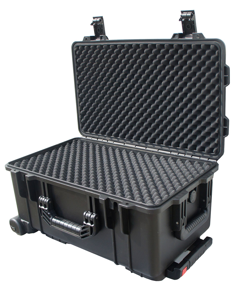 This is Waterproof Wheeled Watertight Case 625 x 420 x 340mm manufactured by RS Pro. The manufacturer part number is 124-6582. The product is made from highly stable and reliable polypropylene. The typical product's weight is 7.7kg. It is IP rated with ip67. It includes dividers no . It includes foam yes . Its material is of plastic type . It is watertight or waterproof yes . It has an external depth of 340mm. It is created with 581 mm overall internal height . Features 625 x 420 x 340mm external caliber. It has about 298mm internal depth . Its has an overall 360 mm internal width . It has a lockable nature yes . Included wheels yes . The product is 420 mm wide. It has a decent black colour. Its internal dimensions are about 581 x 360 x 298mm . While its external height is 625 mm.
