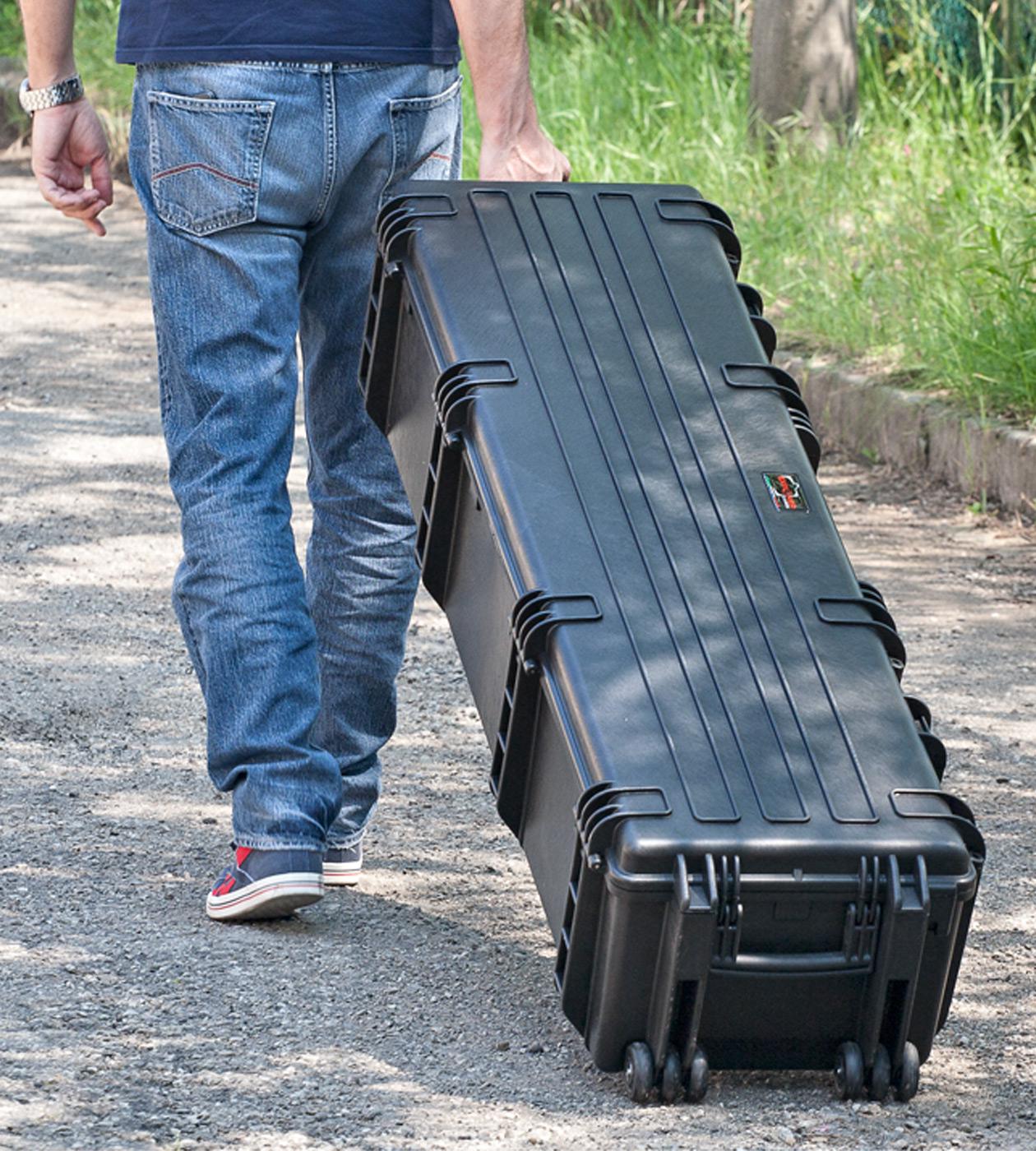 This is Mod. Waterproof Watertight Case With Wheels 1430 x 415 x 296mm manufactured by GT Line. The manufacturer part number is 13527.B. The product is made from highly stable and reliable polypropylene. The typical product's weight is 11.7 kg, with foam 14.9kg. The product mod. 13527.b, is a highly preferred choice for users. It has a decent black colour. It includes foam yes . It is watertight or waterproof yes . It has an external depth of 296mm. It is created with 1350 mm overall internal height . Features 1430 x 415 x 296mm external caliber. Its internal dimensions are about 1350 x 350 x 272mm . Its has an overall 350 mm internal width . It has a lockable nature yes . Included wheels yes . The product is 415 mm wide. It has about 272mm internal depth . While its external height is 1430 mm.