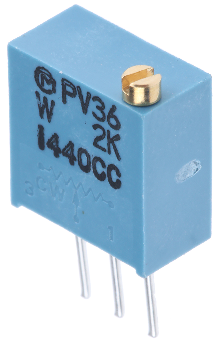 This is PV36W Series 25-Turn Through Hole Trimmer Resistor with Solder Pin Terminations 2kΩ ±10% 0.5W ±100ppm/°C manufactured by Bourns. The manufacturer part number is PV36W202C01B00. The diameter of the shaft is 2 mm. The product has a top adjust orientation. The product is available in through hole configuration. The product pv36, is a highly preferred choice for users. Moreover, it has solder pin terminal style. Consist of 25 turns. It exhibits an excellent temperature coefficient of ±100ppm/°c. Its accurate length is 9.6mm. Whereas, the minimum operating temperature of the product is -55°c. Feature 0.5w of power rating. The product offers a maximum resistance up to 2kω. It features ±10% of tolerance value. It has a maximum operating temperature of +125°c.