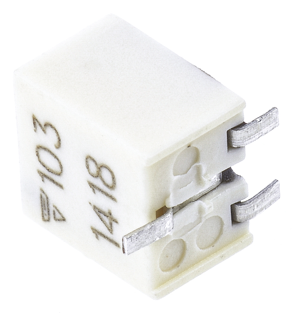 This is TSM4 YJ Series 11 (Electrical) 13 (Mechanical)-Turn SMD Trimmer Resistor with Gull Wing Terminations 10kΩ manufactured by Vishay. The manufacturer part number is TSM4YL103KB25. The diameter of the shaft is 1.5 mm. The product has a top adjust orientation. The product is available in surface mount configuration. The product tsm4, is a highly preferred choice for users. Moreover, it has gull wing terminal style. Consist of 11 turns. It exhibits an excellent temperature coefficient of ±100ppm/°c. Its accurate length is 4.8mm. Whereas, the minimum operating temperature of the product is -55°c. Feature 1/4w of power rating. The product offers a maximum resistance up to 10kω. It features ±10% of tolerance value. It has a maximum operating temperature of +125°c.
