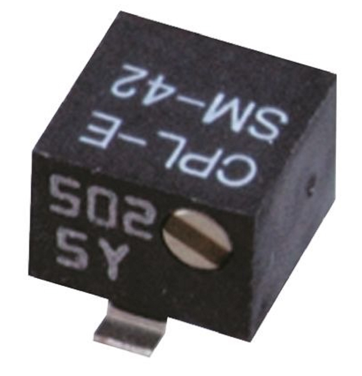 This is 50kΩ SMD Trimmer Resistor 0.25W Side Adjust SM-42 Series manufactured by Copal Electronics. The manufacturer part number is SM-42B 50K ohm(503). The product offers a maximum resistance up to 50kω. The product has a side adjust orientation. The product is available in surface mount configuration. The product sm-42, is a highly preferred choice for users. Moreover, it has solder terminal style. Consist of 11 turns. It exhibits an excellent temperature coefficient of ±100ppm/°c. Its accurate length is 4.8mm. Whereas, the minimum operating temperature of the product is -65°c. It has a maximum 112 v voltage rating. Feature 0.25w of power rating. Moreover, its element is of cermet material . It features ±10% of tolerance value. It has a maximum operating temperature of +150°c.