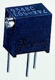 This is T63XB Series 14 (Electrical) 15 (Mechanical)-Turn Through Hole Trimmer Resistor with Pin Terminations 500kΩ manufactured by Vishay. The manufacturer part number is T63XB504KT20. The diameter of the shaft is 1.8 mm. The given dimensions of the product include 7.5 x 5 x 6.8mm. The product is available in through hole configuration. The product t63xb, is a highly preferred choice for users. Moreover, it has pin terminal style. Its accurate length is 7.5mm. It exhibits an excellent temperature coefficient of ±100ppm/°c. In addition, the height is 6.8mm. Consist of 14 (electrical), 15 (mechanical) turns. The product comes in 5mm depth. Whereas, the minimum operating temperature of the product is -55°c. Feature 13/100w of power rating. The product offers a maximum resistance up to 500 kω. It features ±10% of tolerance value. It has a maximum operating temperature of +155°c. The product has a side adjust orientation.