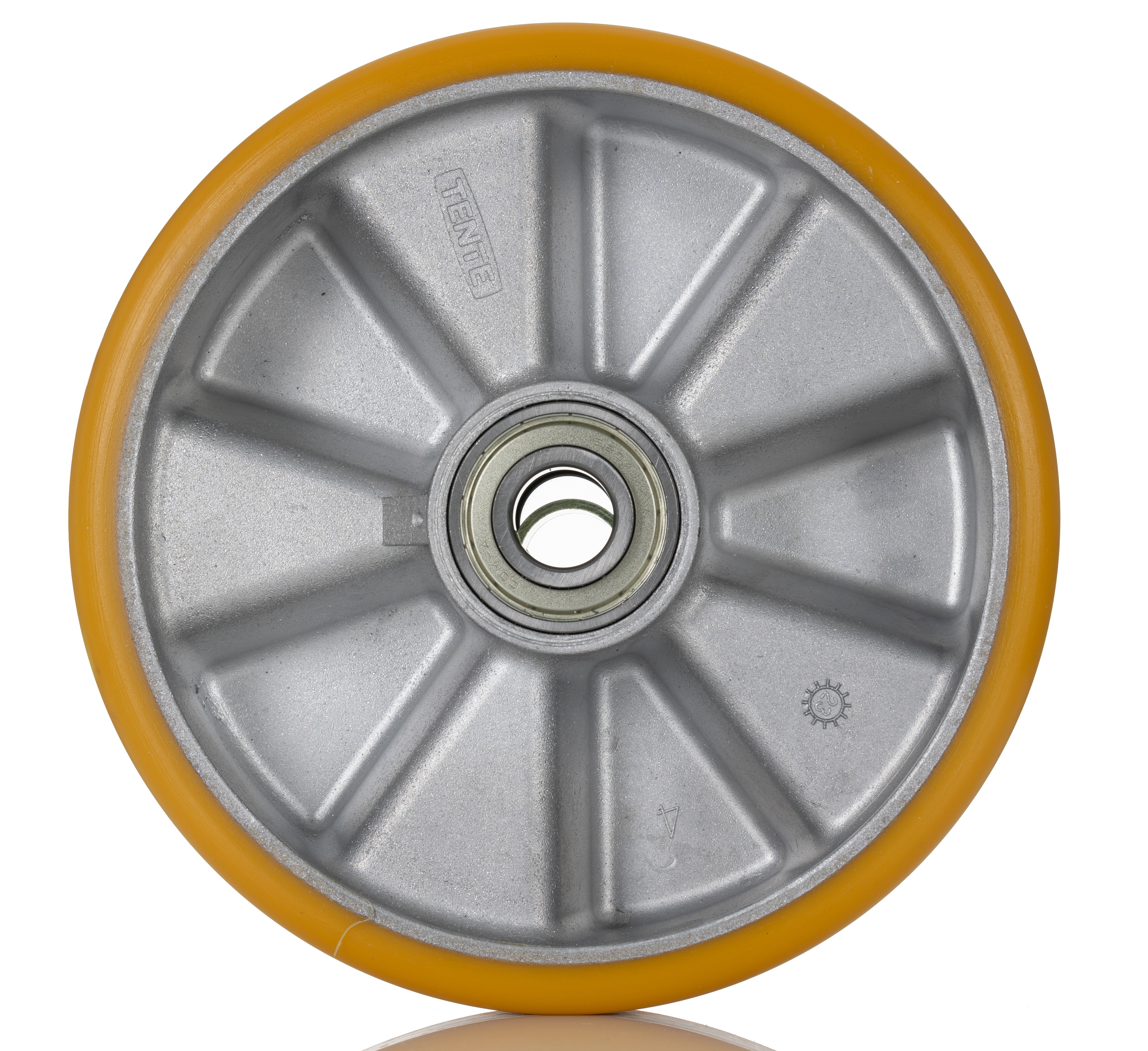 This is PUR Yellow Castor Wheels 1600kg manufactured by Tente. The manufacturer part number is ITP200x50-Ø20 flat. The tyre of the product is made up of polyurethane material . Its bore is 60mm in length . It has a decent yellow colour. It can holds up to 1600kg load capacity. Moreover, it has hard polyurethane type tyre . Its hub is made using aluminium material . The product has a ball bearing type hub bearing . It has a wheel about 50mm in width . Its wheel diameter is about 200mm . Its hub diameter is 60mm . It contains a standard 20mm bore diameter . The splendid features of the product include corrosion resistant.
