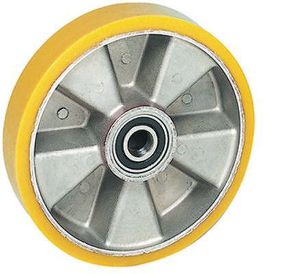 This is PUR Castor Wheels 700daN manufactured by Guitel. The manufacturer part number is 7932002000. The tyre of the product is made up of pur material . Its bore is 60mm in length . It can holds up to 700kg load capacity. Moreover, it has solid type tyre . Its hub is made using aluminium material . The product has a ball bearing type hub bearing . It has a wheel about 50mm in width . Its wheel diameter is about 200mm . It contains a standard 20mm bore diameter . The splendid features of the product include abrasion resistant, corrosion resistant.