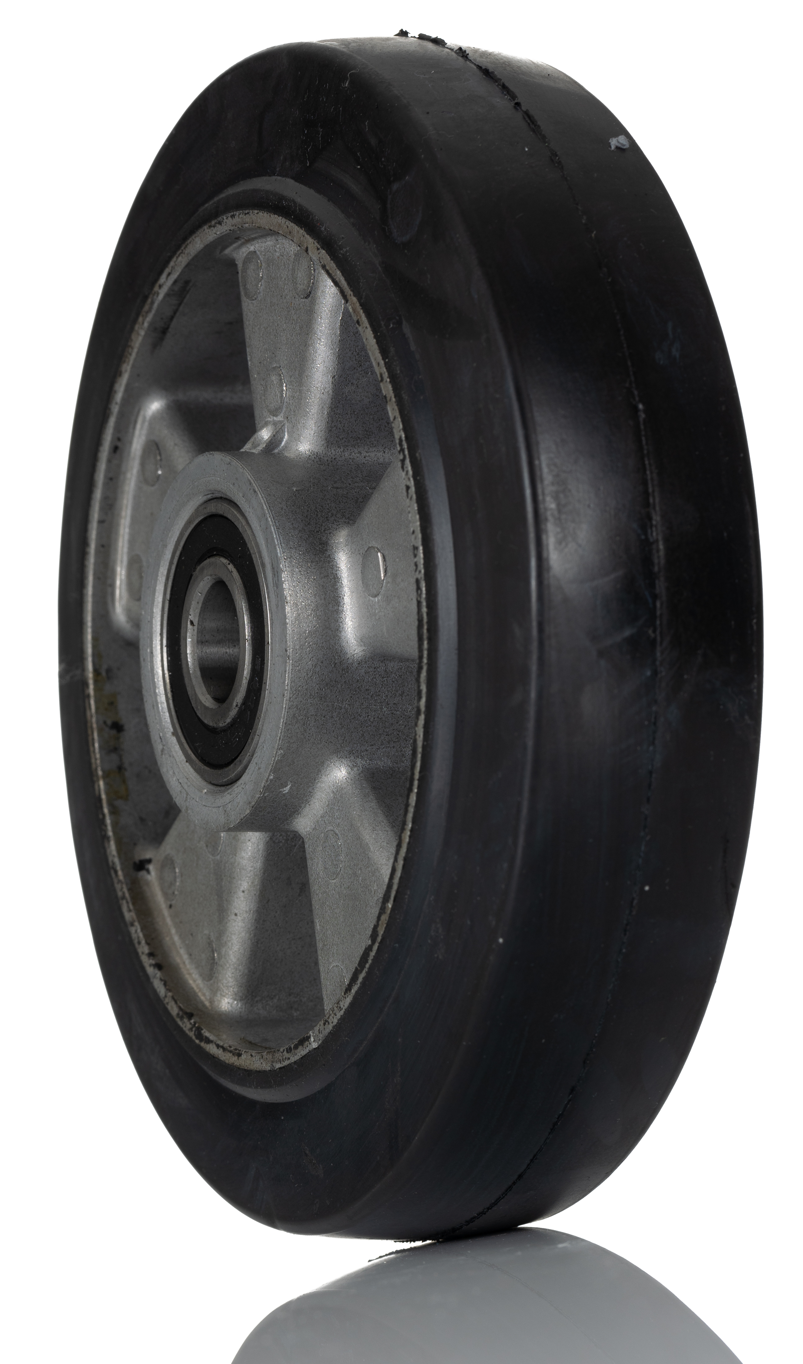This is Black Rubber Castor Wheels 400kg manufactured by RS Pro. The manufacturer part number is 621-9569. The tyre of the product is made up of rubber material . Its bore is 60mm in length . It has a decent black colour. It can holds up to 400kg load capacity. Moreover, it has solid type tyre . Its hub is made using aluminium material . The product has a ball bearing type hub bearing . It has a wheel about 50mm in width . Its wheel diameter is about 200mm . Its hub diameter is 60mm . It contains a standard 20mm bore diameter . The splendid features of the product include abrasion resistant, quiet operation.