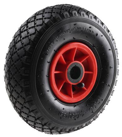This is Black Red Castor Wheels 150daN manufactured by Guitel. The manufacturer part number is 3588121. Its bore is 75mm in length . It can holds up to 150kg load capacity. Moreover, it has pneumatic type tyre . Its hub is made using pp material . The product has a roller bearing type hub bearing . It has a wheel about 85mm in width . Its wheel diameter is about 260mm . It contains a standard 25mm bore diameter . The splendid features of the product include low starting resistance.