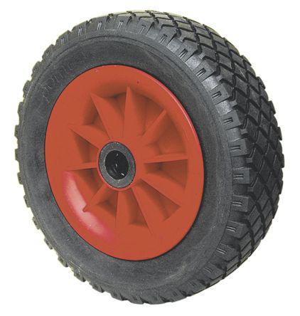 This is Black Red PUR Castor Wheels 120daN manufactured by Guitel. The manufacturer part number is 6022602058. The tyre of the product is made up of pur material . Its bore is 75mm in length . It can holds up to 120kg load capacity. Moreover, it has pneumatic type tyre . Its hub is made using thermoplastic material . The product has a plain bore, roller bearing type hub bearing . It has a wheel about 78mm in width . Its wheel diameter is about 260mm . It contains a standard 20mm bore diameter . The splendid features of the product include compressor, gardening equipment, high-pressure cleaner, small, trailer, wheelbarrow, windsurf board.