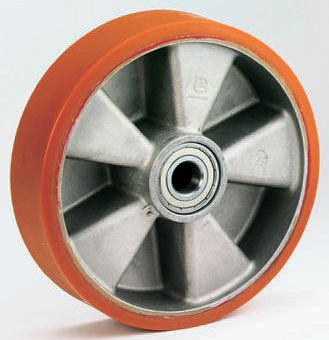 Polyurethane Tyre, Aluminium Hub, Heavy Duty, Series T - Ball Bearing Suitable as a replacement for most hand pallet truck steering wheels Excellent smooth and noiseless running Good resistance to wear and tear, oils, petrol, grease etc. Temperature range -30°C to +80°C Solid polyurethane tyre Note Wheel Size refers to the size of wheel hub plus tyre Polyurethanes have very high load capacity, abrasion and tear resistance, soft ride and chemical resistance. Temperature range: -30 to + 90°C.