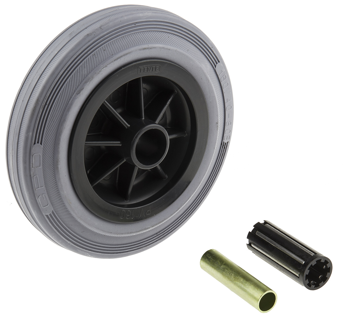 Wheel centre made of Polypropylene, Tread: solid rubber, grey non-marking, roller bearing.