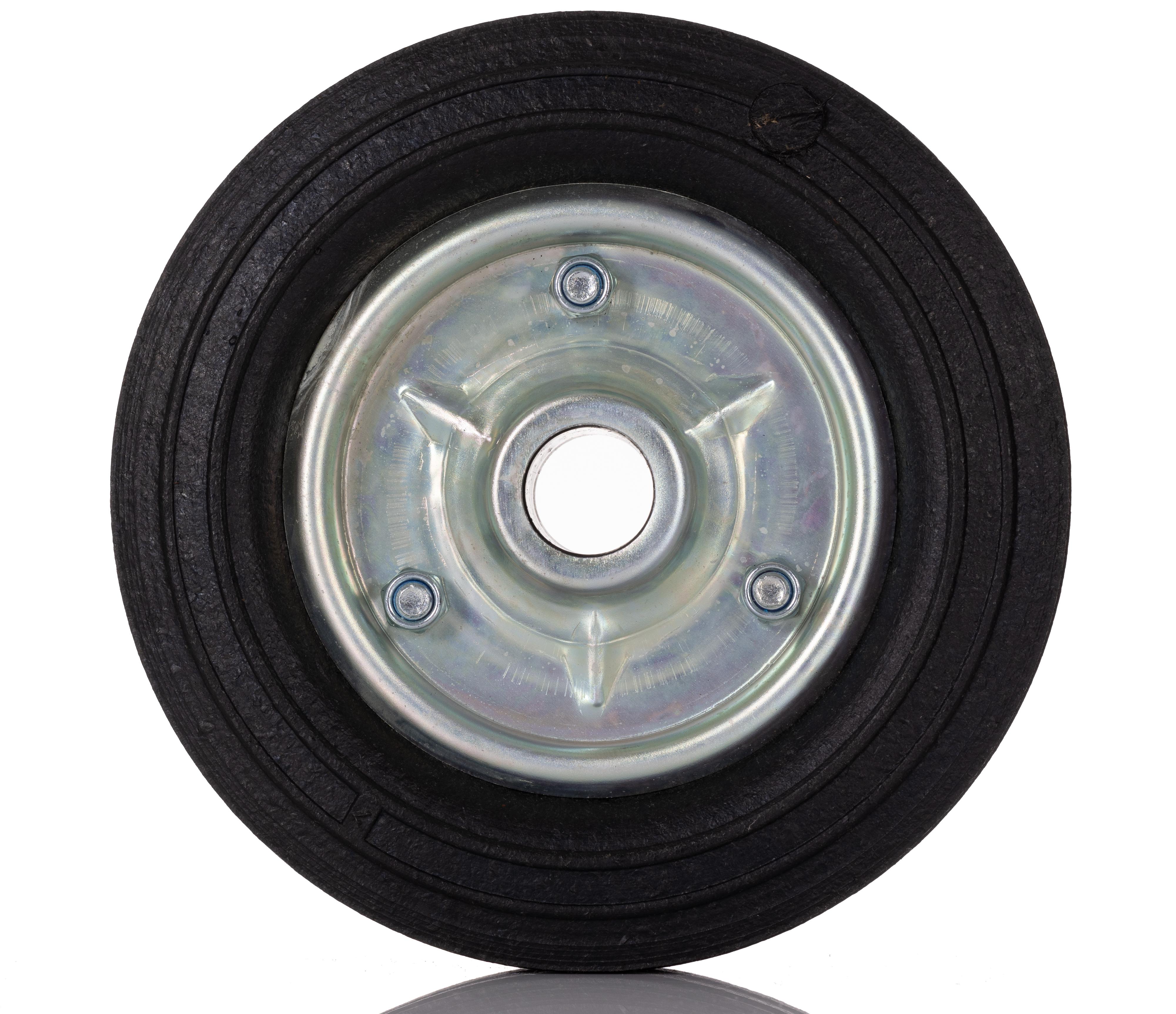 This is Rubber Trolley Wheel 250kg manufactured by Guitel Hervieu. The manufacturer part number is RS_438-7799. The tyre of the product is made up of rubber material . Its bore is 51mm in length . It can holds up to 250kg load capacity. Moreover, it has solid type tyre . Its hub is made using steel material . The product has a plain bore type hub bearing . It has a wheel about 50mm in width . Its wheel diameter is about 200mm . It contains a standard 25mm bore diameter .