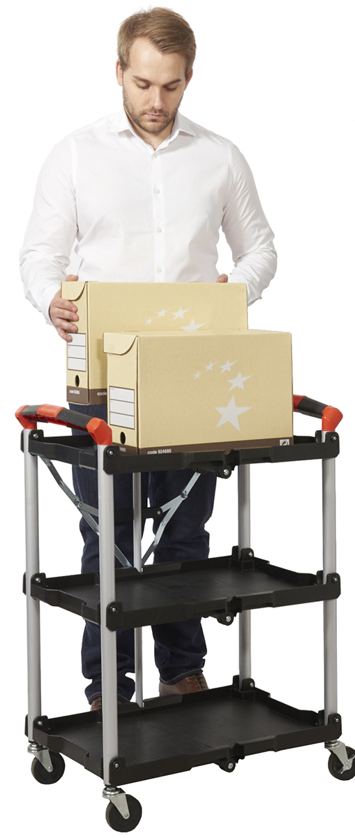 This is 3 Level Aluminium Folding Trolley 670 x 430mm manufactured by RS Pro. The manufacturer part number is 103-8687. The product carries 3 levels. The product is offered with brakes no . It is created with swivel wheel features . It has about 670mm platform length . Moreover, it has 850mm of overall height. It has 670 x 430mm platform dimensions . It can holds up to 8kg load capacity. Its frame is made using aluminium material . It has about 430mm platform width . Its wheel diameter is about 75mm . It comes in folding configuration. It has a castor type wheel .