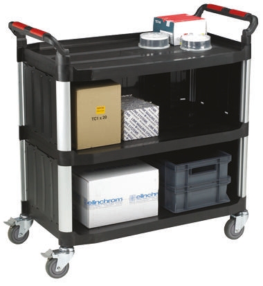 This is 3 Level Aluminium Shelf Trolley 630 x 424mm 150kg Load manufactured by RS Pro. The manufacturer part number is 669-3762. The product carries 3 levels. It has a folding feature no . The product is offered with brakes yes . It is created with braked, swivel wheel features . It has about 630mm platform length . Moreover, it has 980mm of overall height. It has 630 x 424mm platform dimensions . It can holds up to 150kg load capacity. It is created for light duty weight class . Its wheel is made up of rubber material . It has about 424mm platform width . Its wheel diameter is about 100mm . Its frame is made using aluminium material . It comes in shelf configuration. It has a rubber type wheel .