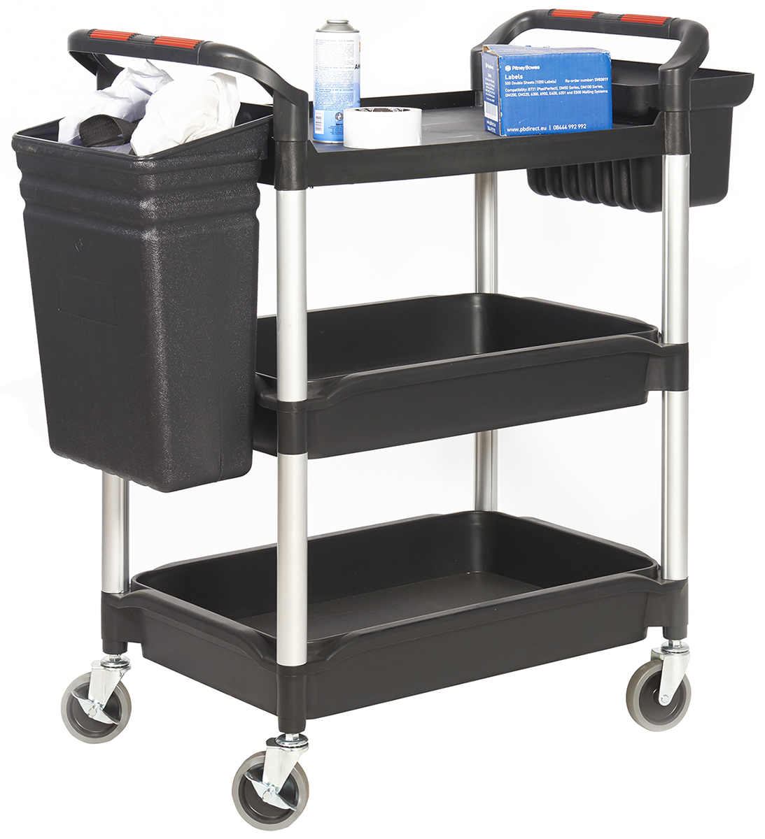 This is 3 Level Plastic Trolley Trolley 1100 x 490mm 150kg Load manufactured by RS Pro. The manufacturer part number is 103-8686. It has a foldable nature no . It contains 3 high quality shelves . Moreover, it has 1.03m of overall height. It is created with a/an plastic platform material . The product is offered with brakes yes . It has an overall width of 490mm. It has about 490mm platform width . It can holds up to 150kg load capacity. It is created for medium duty weight class . It has an overall length of 1.1m. Its wheel diameter is about 100mm . Its frame is made using plastic material . trolley is a versatile product designed to provide user-defined applications. It has about 1.1m platform length . It has a swivel type wheel .