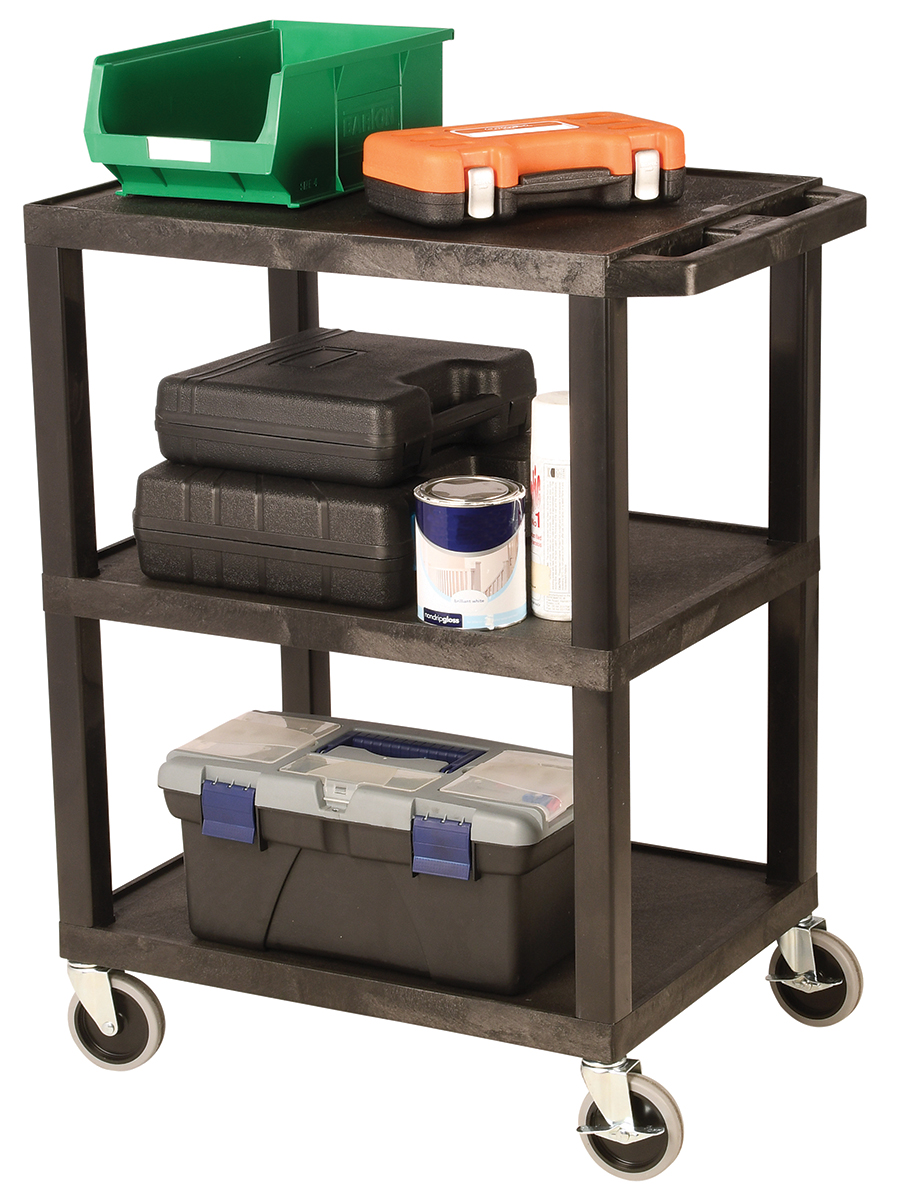This is 3 Level PE Shelf Trolley 610 x 458mm 120kg Load manufactured by RS Pro. The manufacturer part number is 225-5971. The product carries 3 levels. The product is offered with brakes yes . It is created with braked, non-marking, swivel wheel features . It has about 670mm platform length . Moreover, it has 860mm of overall height. It has 610 x 460mm platform dimensions . It can holds up to 150kg load capacity. Its frame is made using pe material . Its wheel is made up of rubber material . It has about 460mm platform width . Its wheel diameter is about 100mm . It comes in shelf configuration. It has a rubber type wheel .