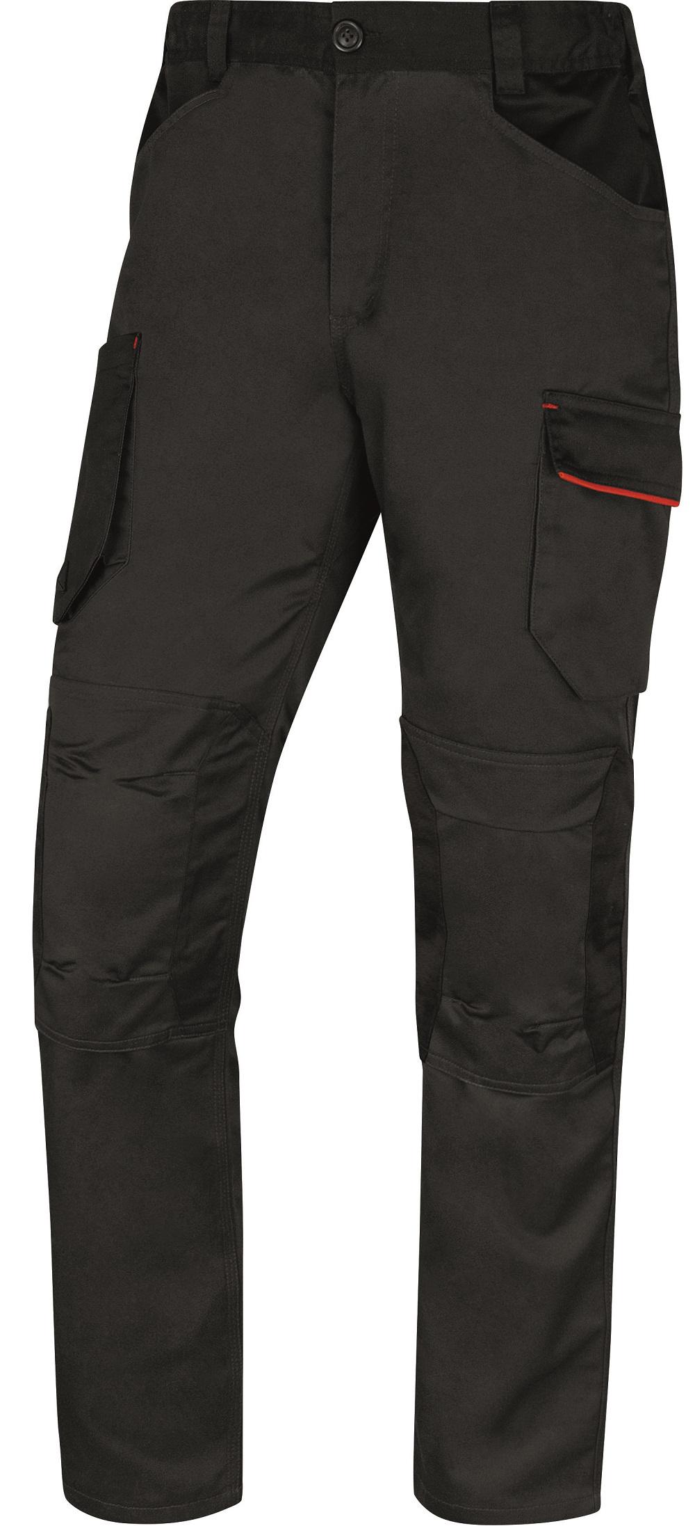 Trousers. Adjusted cut. Elasticated waist on both sides. Preformed knees. 7 pockets including 1 ruler. Twill 63% polyester 34% cotton 3% elastane 260 g/m². Triple seams
