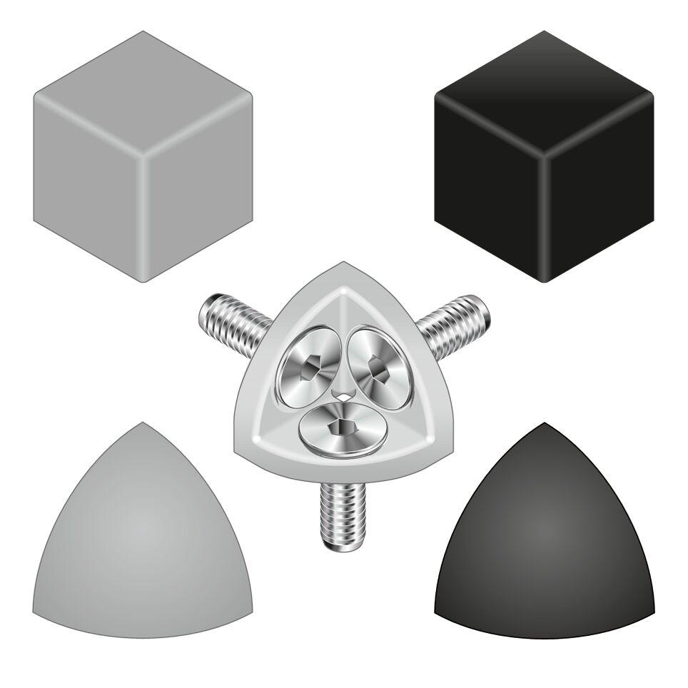 This is Grey Corner Bracket Cap 30 x 30R Strut Profile manufactured by Bosch Rexroth. The manufacturer part number is 3842548717. It has a standard corner bracket cap type structural element . It has a decent grey colour. It is designed to fit 30 x 30r struct profile .