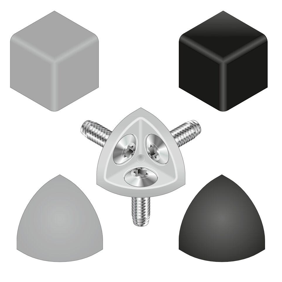 This is Grey Corner Bracket Cap 40 x 40R Strut Profile manufactured by Bosch Rexroth. The manufacturer part number is 3842548718. It has a standard corner bracket cap type structural element . It has a decent grey colour. It is designed to fit 40 x 40r struct profile .