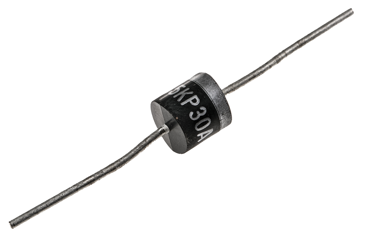 This is Uni-Directional TVS Diode 5000W 2-Pin P600 manufactured by Vishay. The manufacturer part number is 5KP30A-E3/54. It also has 103a maximum peak pulse current. While the maximised reverse stand-off voltage includes 30v. The given dimensions of the product include 9.1 x 9.1 x 9.1mm. The product is available in through hole configuration. While is configured as uni-directional. It has a maximum operating temperature of +175 °c. The product has a maximum 2µa of reverse leakage current. It harbours a 33.3v of minimum breakdown voltage. It has 5000w of peak pulse power dissipation. In addition, the height is 9.1mm. Furthermore, the product is 9.1mm wide. Its accurate length is 9.1mm. The package is a sort of p600. It consists of 1 elements per chip. Whereas, the minimum operating temperature of the product is -55 °c. It is supplied with 48.4v of maximum clamping voltage. The diode features a single configuration. It contains 2 pins. In addition, it has 5ma test current.