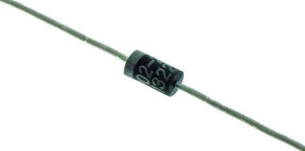 This is Bi-Directional TVS Diode 400W 2-Pin DO-204AL manufactured by Vishay. The manufacturer part number is P4KE350CA-E3/54. Its diameter is 2.7mm. While the maximised reverse stand-off voltage includes 300v. The given dimensions of the product include 2.7 x 5.2mm. The product is available in through hole configuration. While is configured as bi-directional. It has about 40a surge current rating . It has a maximum operating temperature of +175 °c. The product has a maximum 1µa of reverse leakage current. It harbours a 333v of minimum breakdown voltage. It has 400w of peak pulse power dissipation. It also has 0.83a maximum peak pulse current. It is supplied with 482v of maximum clamping voltage. Its accurate length is 5.2mm. The package is a sort of do-204al. It consists of 1 elements per chip. Whereas, the minimum operating temperature of the product is -55 °c. The diode features a single configuration. It contains 2 pins. In addition, it has 1ma test current.