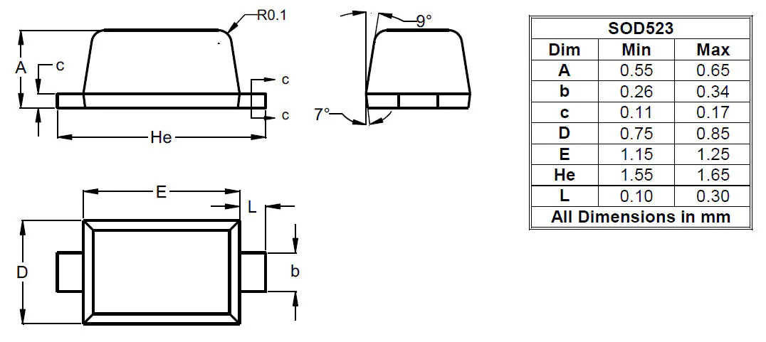 This is Diodes Inc Uni-Directional TVS Diode SOD523 manufactured by DiodesZetex. The manufacturer part number is T6V0S5A-7. The product is available in surface mount configuration. It harbours a 6.8v of minimum breakdown voltage. While is configured as uni-directional. It is supplied with 17v of maximum clamping voltage. The package is a sort of sod523.