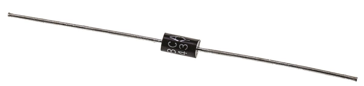 This is Taiwan Semi R0 Bi-Directional TVS Diode 500W 2-Pin DO-15 manufactured by Taiwan Semiconductor. The manufacturer part number is SA28CA. It also has 11.5a maximum peak pulse current. While the maximised reverse stand-off voltage includes 28v. The given dimensions of the product include 7.6 x 3.6 x 3.6mm. The product is available in through hole configuration. While is configured as bi-directional. It has a maximum operating temperature of +175 °c. The product has a maximum 1µa of reverse leakage current. It harbours a 31.1v of minimum breakdown voltage. It has 500w of peak pulse power dissipation. In addition, the height is 3.6mm. Furthermore, the product is 3.6mm wide. Its accurate length is 7.6mm. The package is a sort of do-15. It consists of 1 elements per chip. Whereas, the minimum operating temperature of the product is -55 °c. It is supplied with 45.4v of maximum clamping voltage. The diode features a single configuration. It contains 2 pins. In addition, it has 1ma test current.