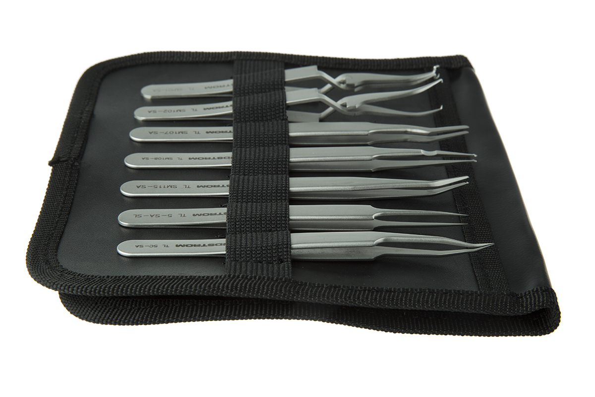 This is 7 piece Stainless Steel Tweezer Set with Various Contents manufactured by Lindstrom. The manufacturer part number is 9854. The product is made from highly stable and reliable stainless steel. The product consists of 7 pieces.