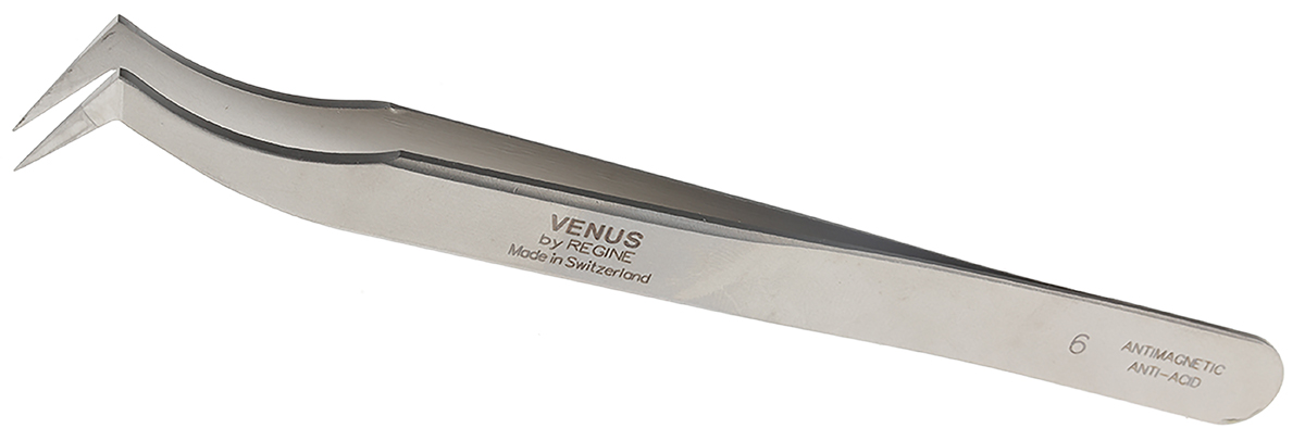 This is 115 mm Anti-Magnetic Stainless Steel Fine; Hook Anti-Acid Tweezers manufactured by RS Pro. The manufacturer part number is 238-6205. The tip is fine in size. The product is made from highly stable and reliable stainless steel. In addition, it is anti-acid yes . It has an anti-magnetic characteristic yes . It has an overall length of 115 mm. It has a/an hook type point .
