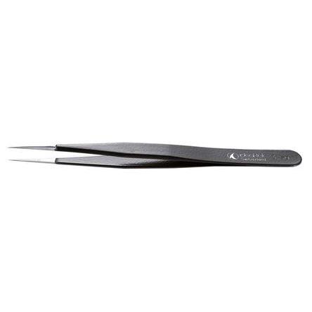 This is 120 mm Anti-Magnetic Stainless Steel Fine Very Sharp ESD Anti-Acid Solder Resistant Tweezers manufactured by Idealtek. The manufacturer part number is 3.SANEB. It has a solder adhesion resistant feature yes . The product is made from highly stable and reliable stainless steel. ESD Safety - yes. In addition, it is anti-acid yes . It has an anti-magnetic characteristic yes . It has an overall length of 120 mm. It has a/an fine, very sharp type point .