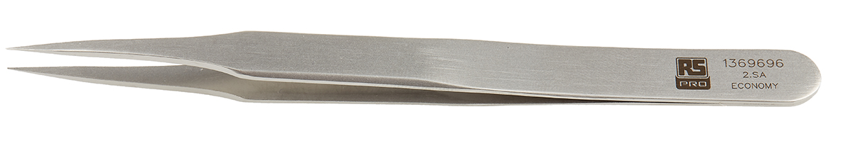 This is 120 mm Anti-Magnetic Stainless Steel Fine; Flat Anti-Acid Tweezers manufactured by RS Pro. The manufacturer part number is 136-9696. The tip is fine in size. The product is made from highly stable and reliable stainless steel. It has a model number 2.sa. In addition, it is anti-acid yes . It has an anti-magnetic characteristic yes . It has an overall length of 120 mm. It has a/an flat type point .