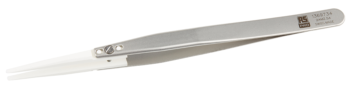 This is 140 mm Anti-Magnetic Stainless Steel Flat; Rounded Anti-Acid Tweezers manufactured by RS Pro. The manufacturer part number is 136-9734. The product is made from highly stable and reliable stainless steel. In addition, it is anti-acid yes . It has an anti-magnetic characteristic yes . It has a model number 2amz.sa. It has an overall length of 140 mm.