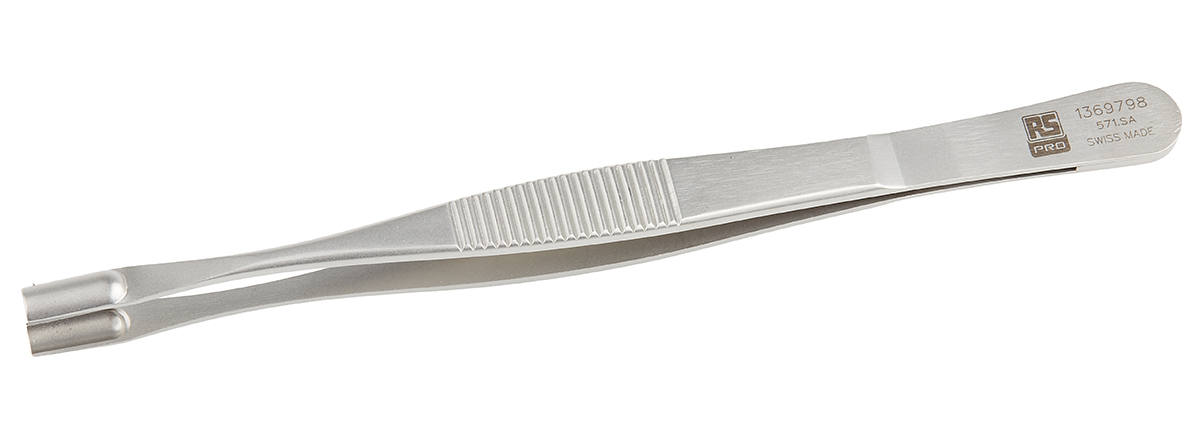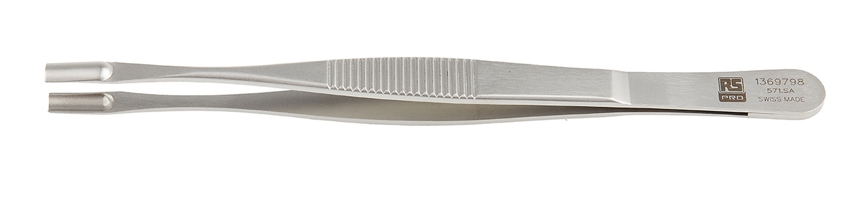 This is 145 mm Anti-Magnetic Stainless Steel Grooved Anti-Acid Tweezers manufactured by RS Pro. The manufacturer part number is 136-9798. The product is made from highly stable and reliable stainless steel. It has a model number 571.sa. In addition, it is anti-acid yes . It has an anti-magnetic characteristic yes . It has an overall length of 145 mm. It has a/an grooved; cylindrical type point .