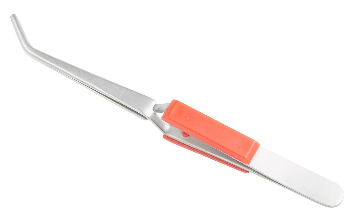 This is 165 mm Anti-Magnetic Stainless Steel Bent; Serrated Anti-Acid Tweezers manufactured by RS Pro. The manufacturer part number is 136-9809. The product has a bent orientation. The product is made from highly stable and reliable stainless steel. It has an overall length of 165 mm. It has a model number 30.sa. In addition, it is anti-acid yes . It has an anti-magnetic characteristic yes . ESD Safety - no. It has a/an serrated type point .