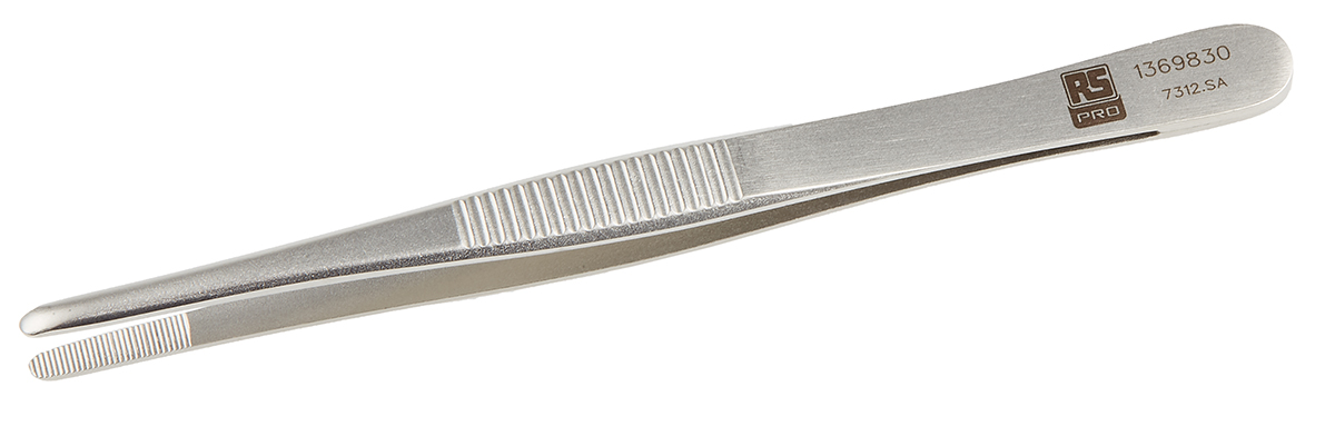 This is 120 mm Anti-Magnetic Stainless Steel Blunt Anti-Acid Tweezers manufactured by RS Pro. The manufacturer part number is 136-9830. The product is made from highly stable and reliable stainless steel. It has a model number 7312.sa. In addition, it is anti-acid yes . It has an anti-magnetic characteristic yes . It has an overall length of 120 mm. It has a/an blunt type point .