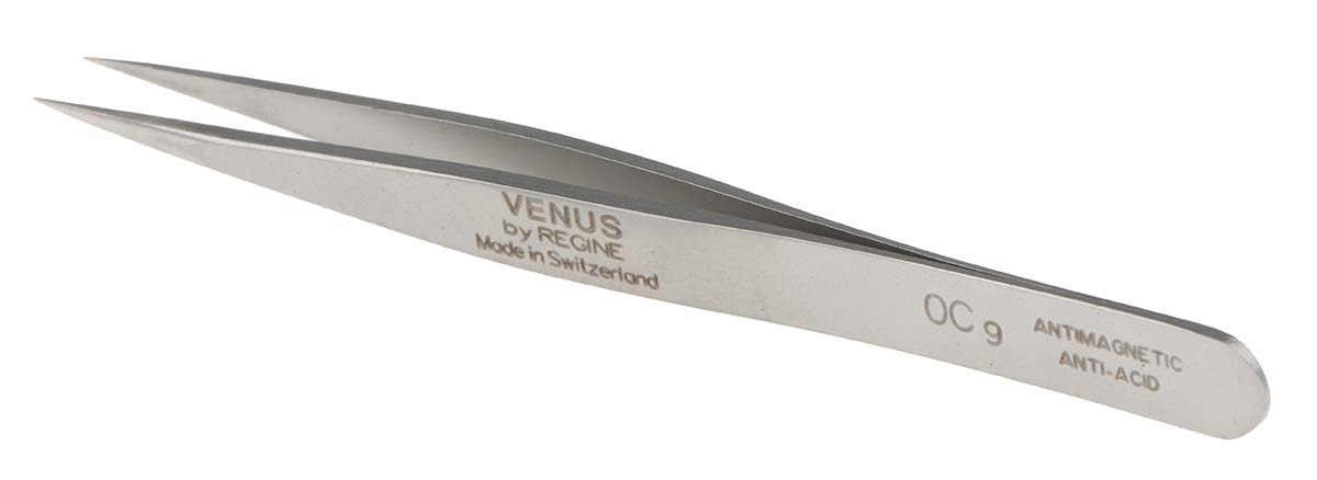 This is 90 mm Anti-Magnetic Stainless Steel Fine Anti-Acid Tweezers manufactured by RS Pro. The manufacturer part number is 238-6176. The tip is fine in size. The product is made from highly stable and reliable stainless steel. In addition, it is anti-acid yes . It has an anti-magnetic characteristic yes . It has an overall length of 90 mm.