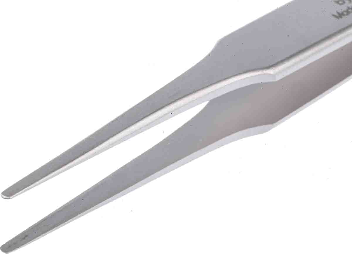 This is 120 mm Anti-Magnetic Stainless Steel Flat; Rounded Anti-Acid Tweezers manufactured by RS Pro. The manufacturer part number is 238-6255. It has a/an flat; rounded type point . The product is made from highly stable and reliable stainless steel. In addition, it is anti-acid yes . It has an anti-magnetic characteristic yes . It has an overall length of 120 mm.