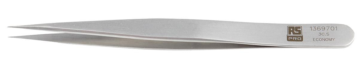 This is 110 mm Anti-Magnetic Stainless Steel Anti-Acid Tweezers manufactured by RS Pro. The manufacturer part number is 136-9701. The product is made from highly stable and reliable stainless steel. In addition, it is anti-acid yes . It has an anti-magnetic characteristic yes . It has a model number 3c.sa.b. It has an overall length of 110 mm.