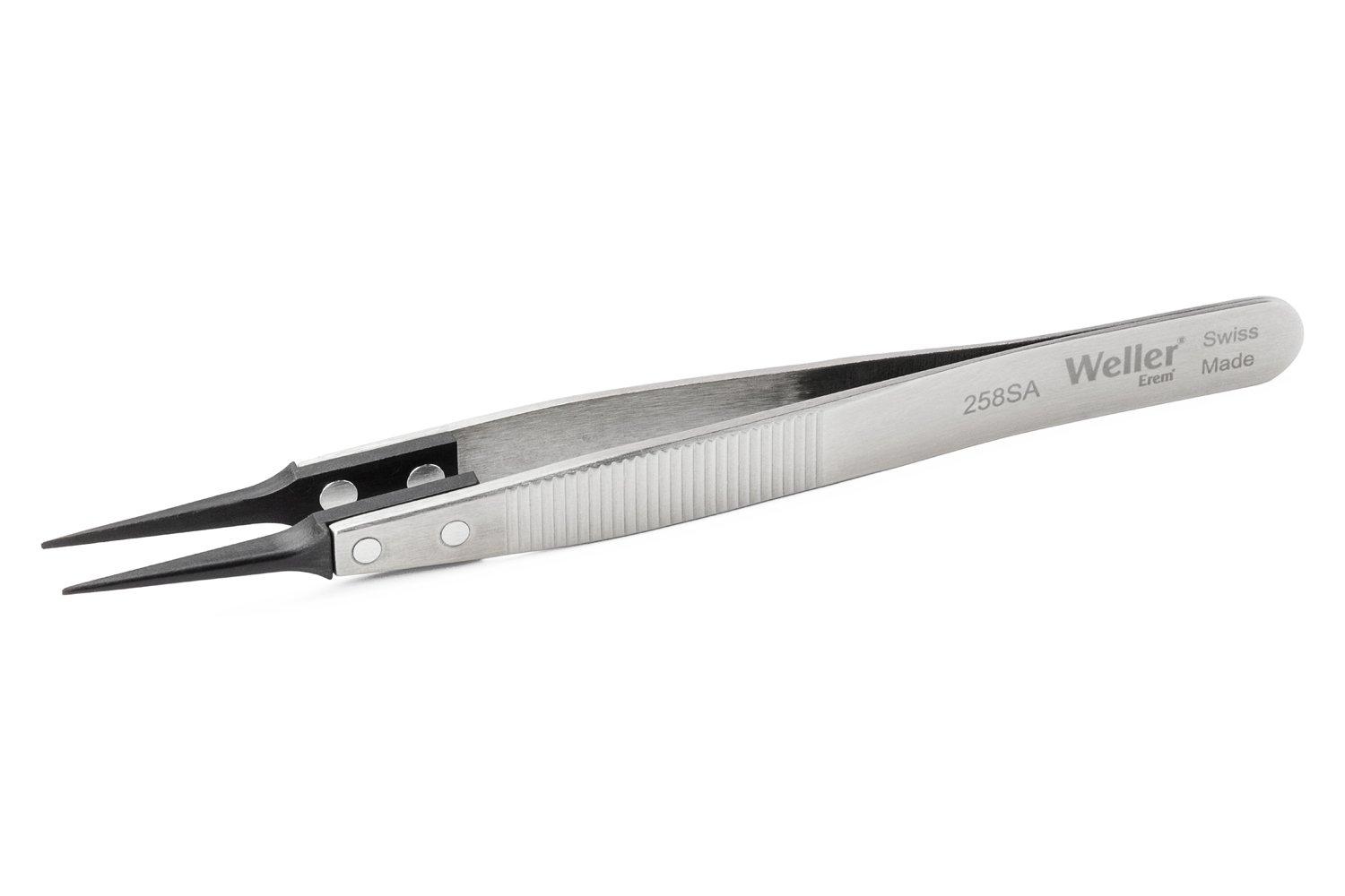 This is Erem by Weller 120 mm Anti-Magnetic Stainless Steel Straight; Pointed; Relieved ESD Anti-Acid Solder Resistant manufactured by Weller Erem. The manufacturer part number is 258SA. It has a solder adhesion resistant feature yes . The product has a straight orientation. The product is made from highly stable and reliable stainless steel. It has an overall length of 120 mm. In addition, it is anti-acid yes . It has an anti-magnetic characteristic yes . ESD Safety - yes. It has a/an pointed; relieved type point .