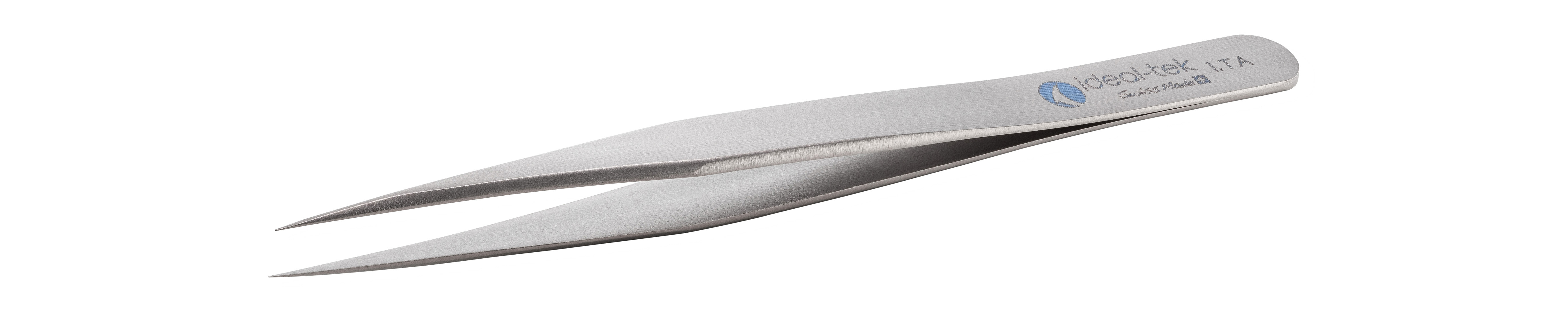 This is 120 mm Titanium Fine Tweezers manufactured by ideal-tek. The manufacturer part number is 1.TA.0. The tip is 0.20 x 0.14 mm in size. The product has a straight orientation. The product is made from highly stable and reliable titanium. It has an overall length of 120 mm. It has a model number 1.ta.0. It has an anti-magnetic characteristic no . ESD Safety - no. It has a/an straight type point .