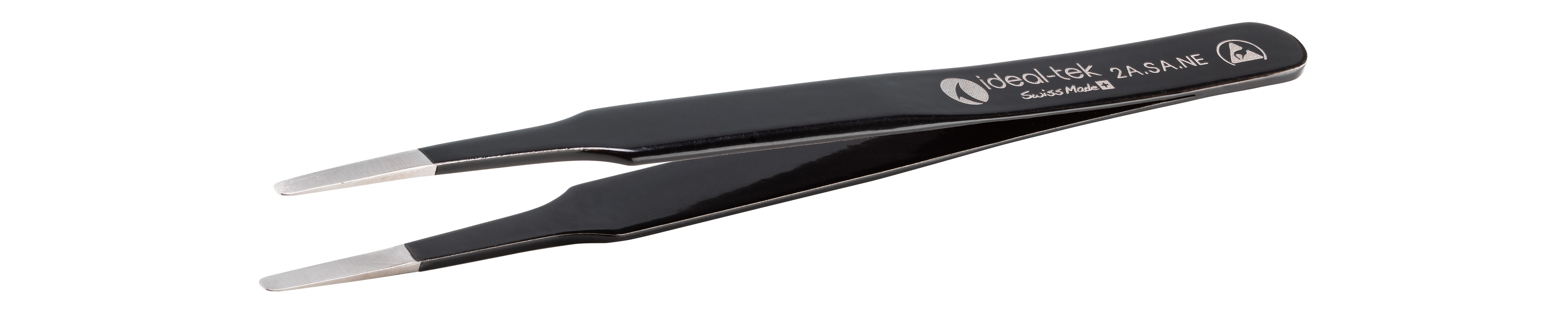 Ideal-tek ESD Epoxy Coated Tweezers A series of ESD Epoxy Coated Tweezers by Ideal-tek. Specially designed for use with electronic, medical and scientific applications. Features and Benefits Non-magnetisable Corrosion resistance to most chemicals, salts and acids Generally used where corrosion resistance and toughness are primary requirements Epoxy Coating Conductive polyester epoxy coating comprise essentially polyester and epoxy resins, plus the electrically Conductive additives, light and heat resistance pigment. Excellent general resistance Easy to clean Excellent dispersion Impact-resistant surface Excellent elasticity Functional permanent graffiti protection Application Information ESD Epoxy Coated Tweezers typical applications include tweezers for the electronic industry, watch-makers, jewellers and laboratory or medical applications in moderately aggressive chemical environments.