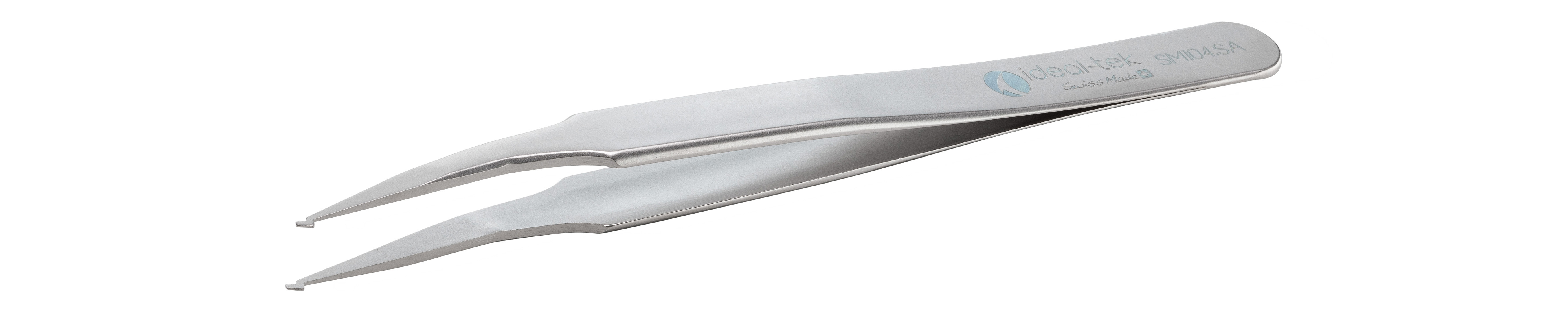 This is 120 mm Polyester (Handle) Stainless Steel (Body) Bent Tweezers manufactured by ideal-tek. The manufacturer part number is SM104.SA.1. The product has a bent orientation. The product is made from highly stable and reliable polyester (handle), stainless steel (body). It has a model number sm104.sa. In addition, it is anti-acid yes . It has an anti-magnetic characteristic yes . It has an overall length of 120 mm.