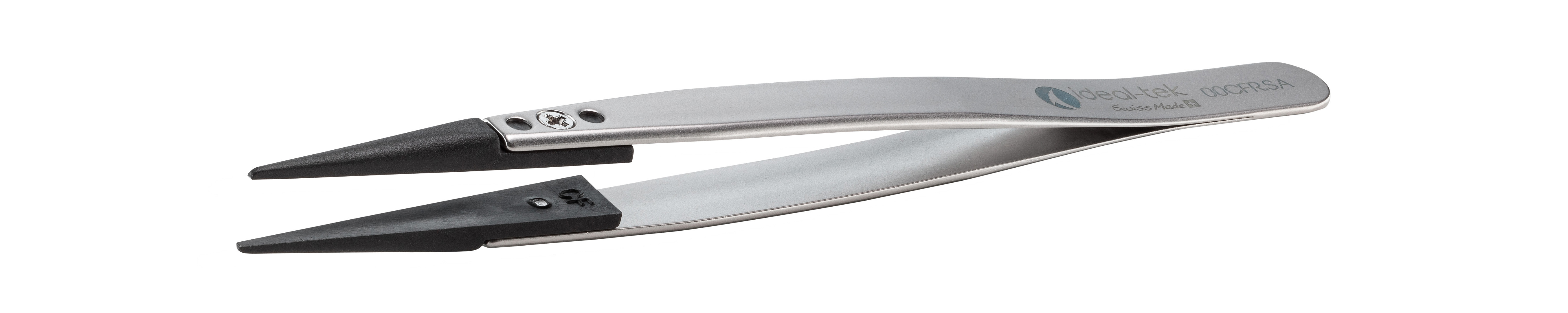 This is 130 mm PA66/CF30 (Tip) Stainless Steel (Body) Straight ESD Tweezers manufactured by ideal-tek. The manufacturer part number is 00CFR.SA.1. The product has a straight orientation. The product is made from highly stable and reliable pa66/cf30 (tip), stainless steel (body). It has an overall length of 130 mm. It has a model number 00cfr.sa. In addition, it is anti-acid yes . It has an anti-magnetic characteristic yes . ESD Safety - yes.