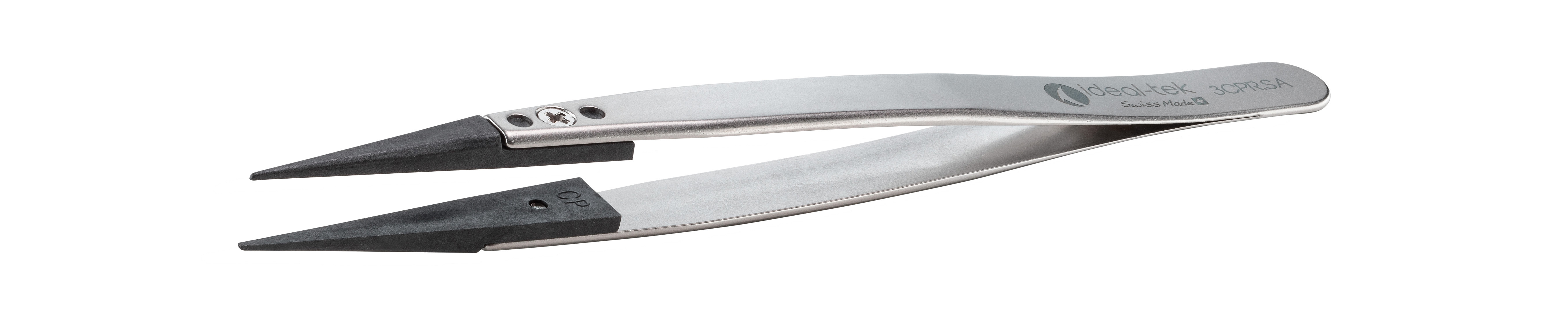 This is 130 mm PEEK (Tip) Stainless Steel (Body) Fine ESD Tweezers manufactured by ideal-tek. The manufacturer part number is 3CPR.SA.1. The tip is fine in size. The product is made from highly stable and reliable peek (tip), stainless steel (body). It has an overall length of 130 mm. It has a model number 3cpr.sa. In addition, it is anti-acid yes . It has an anti-magnetic characteristic yes . ESD Safety - yes.