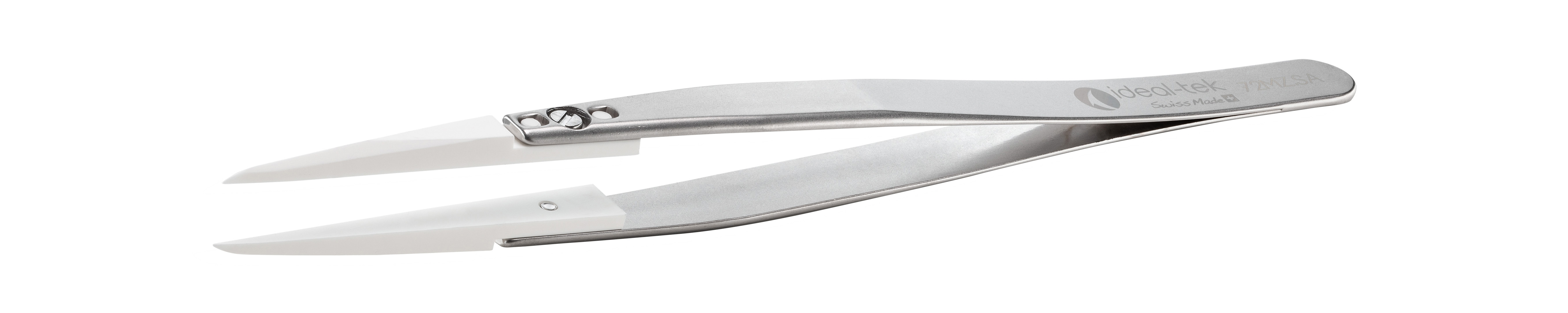 This is 135 mm Polyester (Handle) Stainless Steel (Body) Fine Tweezers manufactured by ideal-tek. The manufacturer part number is 72MZ.SA.0. The tip is fine in size. The product is made from highly stable and reliable polyester (handle), stainless steel (body). It has a model number 72mz.sa. In addition, it is anti-acid yes . It has an anti-magnetic characteristic yes . It has an overall length of 135 mm.