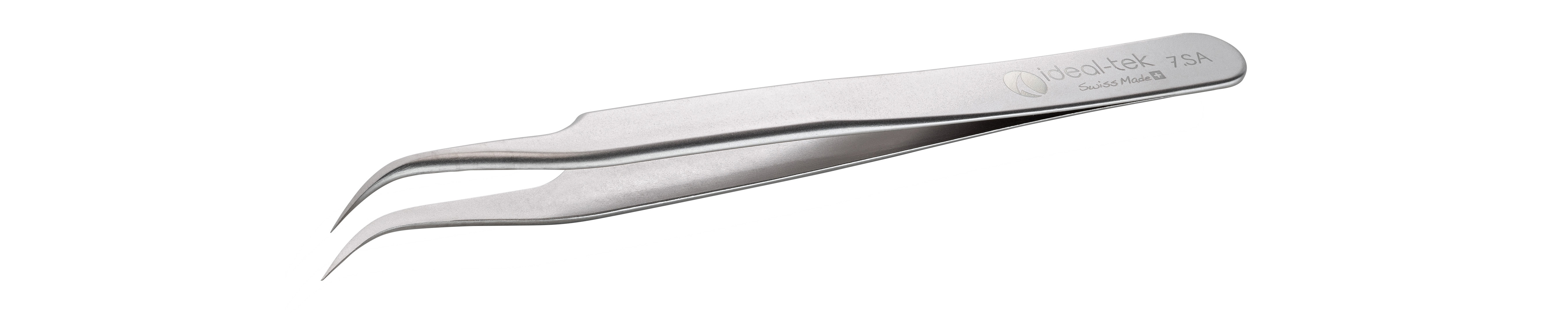 This is 115 mm Stainless Steel Curved Extra Fine Tweezers manufactured by ideal-tek. The manufacturer part number is 02.7.SA.1. The tip is extra fine in size. The product has a curved orientation. The product is made from highly stable and reliable stainless steel. In addition, it is anti-acid yes . It has an anti-magnetic characteristic yes . It has an overall length of 115 mm.