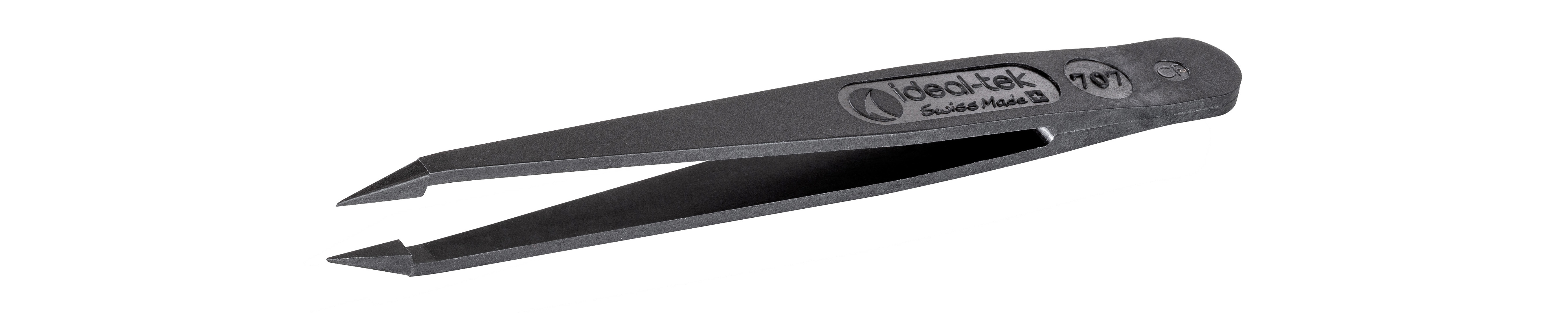This is 115 mm PA66/CF30 (Tip) Plastic (Body) Fine ESD Tweezers manufactured by ideal-tek. The manufacturer part number is 707.CF. The tip is fine in size. The product is made from highly stable and reliable pa66/cf30 (tip), plastic (body). It has an overall length of 115 mm. ESD Safety - yes.