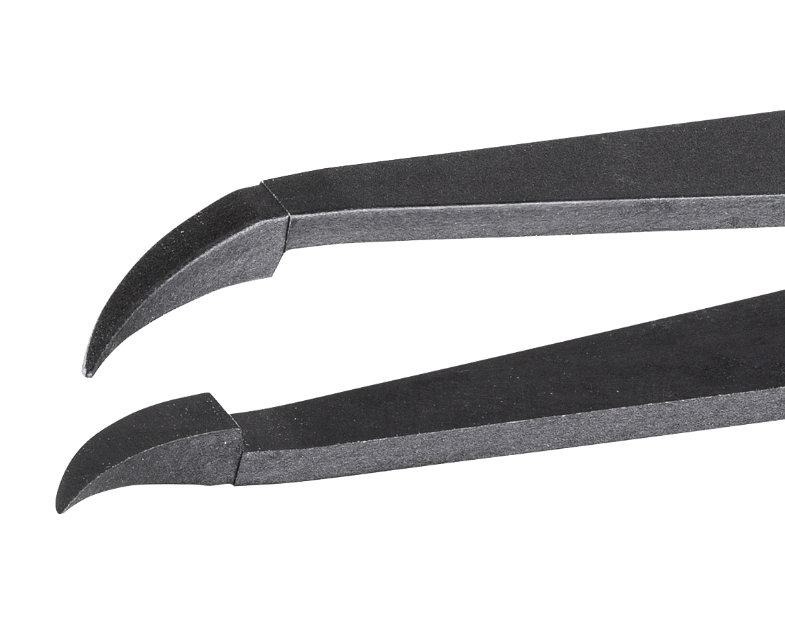 This is 115 mm PA66/CF30 (Tip) Plastic (Body) Curved Fine ESD Tweezers manufactured by ideal-tek. The manufacturer part number is 707A.CF. The tip is fine in size. The product is made from highly stable and reliable pa66/cf30 (tip), plastic (body). It has an overall length of 115 mm. The product has a curved orientation. ESD Safety - yes.